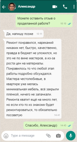 После заключения договора приступаем к ремонту. Продолжительность капитального ремонта составляет 20 дней, а косметического пять. Срок работы зависит от размера помещения и его особенностей.