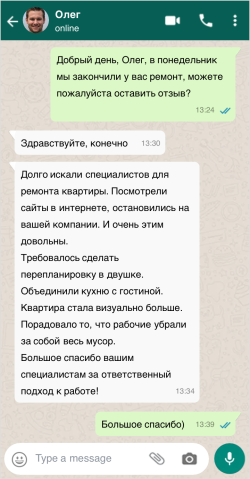 Заказчик сможет оплатить ремонт наличным или безналичным расчётом. Вносить деньги нужно поэтапно. Количество этапов указано в документе. Сделать ремонт зала, кухни, спальни, ванной комнаты и туалета по приемлемой стоимости легко, достаточно обратиться в нашу компанию.