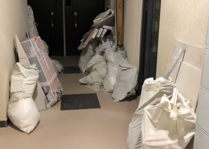 После завершения ремонтных работ мастера вывезут оставшийся строительный мусор из объекта. Остатки стройматериалов будут упакованы в мешки и вывезены на спецтранспорте. Все это будет происходить примерно в такой последовательности: